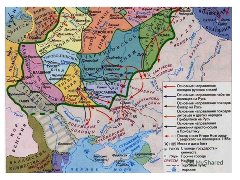 мощное боярство, опиравшееся на вотчинное землевладение. Особые отношения сложились у Черниговского княжества с половцами…