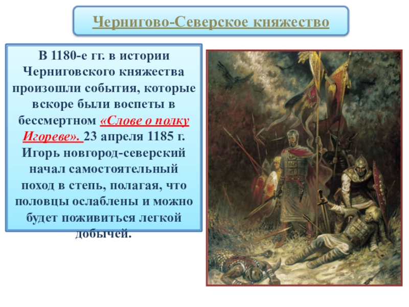 Слайд 29В 1180-е гг. в истории Черниговского княжества произошли события, которые вскоре
