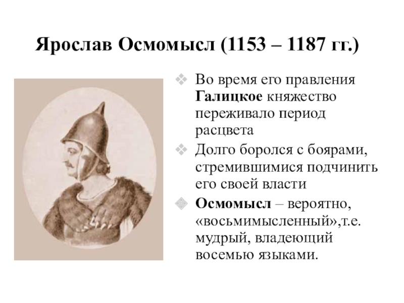 Слайд 44Ярослав Осмомысл (1153 – 1187 гг.)