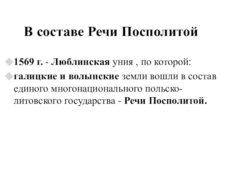 вошли в состав единого многонационального польско-литовского государства - Речи Посполитой.