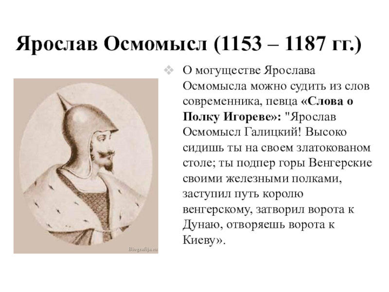 Слайд 45Ярослав Осмомысл (1153 – 1187 гг.)