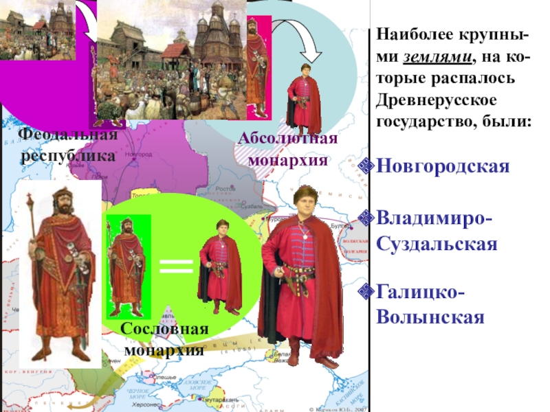 Наиболее крупны-ми землями, на ко-торые распалось Древнерусское государство, были:
