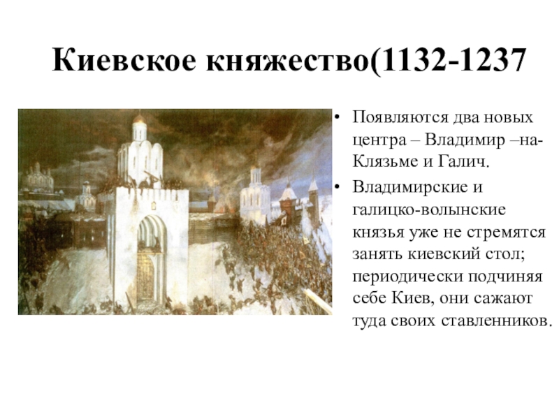 Слайд 12 Киевское княжество по-прежнему считалось первым среди других русских княжеств. Его