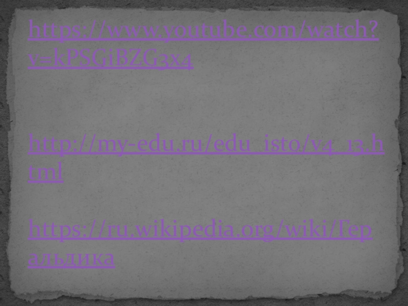 Слайд 9https://www.youtube.com/watch?v=kPSGiBZG3x4 http://my-edu.ru/edu_isto/v4_13.html https://ru.wikipedia.org/wiki/Геральдика