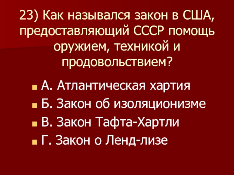 Г. Закон о Ленд-лизе