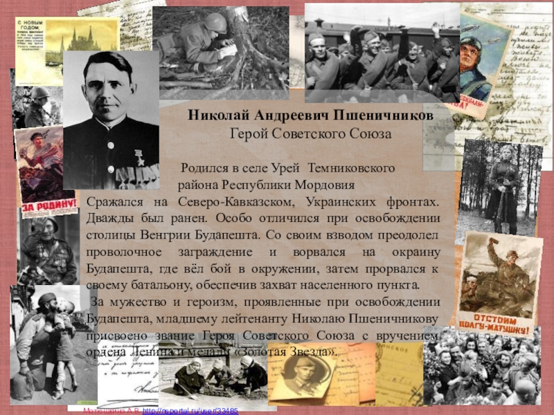 За мужество и героизм, проявленные при освобождении Будапешта, младшему лейтенанту Николаю Пшеничникову присвоено звание Героя Советского Союза с вручением ордена Ленина и медали «Золотая Звезда».
