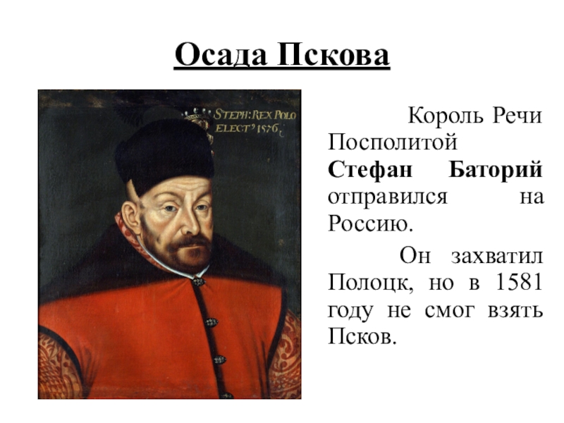 Осада Пскова       Король Речи Посполитой Стефан Баторий отправился на Россию.