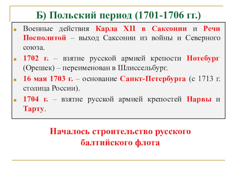 1701-1704 гг. - строительство крупнейших в стране заводов по производству железа, чугуна, пушек, лафетов, ядер для нужд армии.