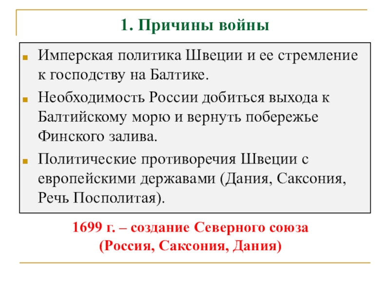 1699 г. – создание Северного союза