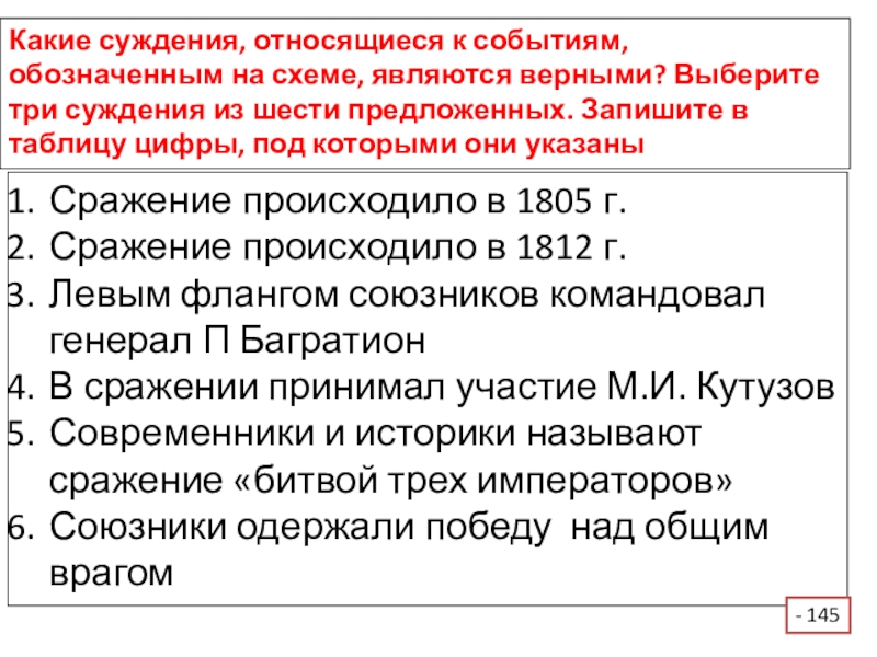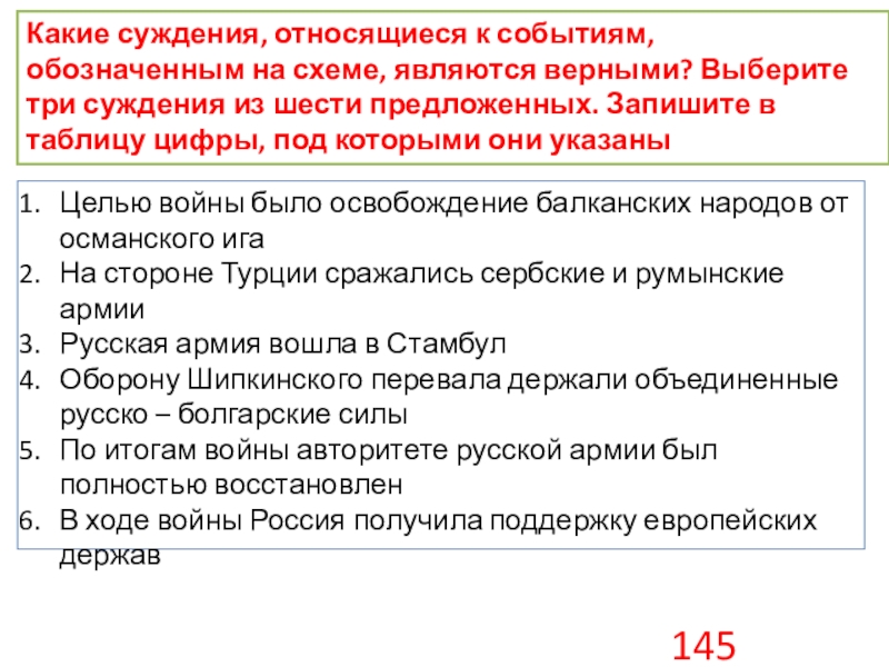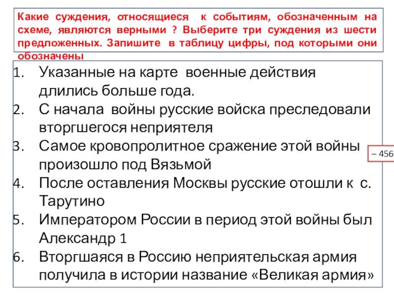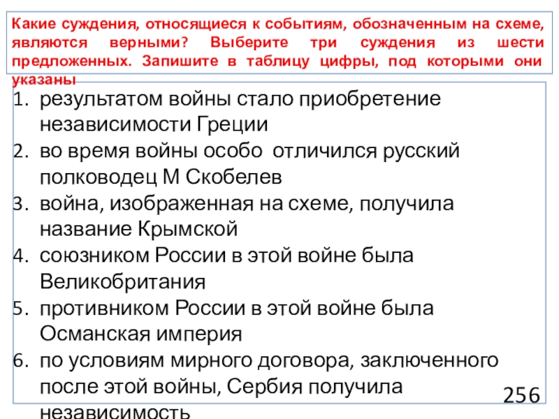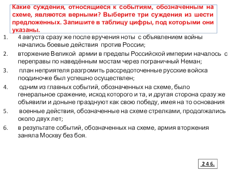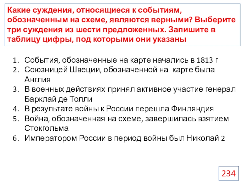 Какие суждения, относящиеся к событиям, обозначенным на схеме, являются верными? Выберите три суждения из шести предложенных. Запишите в таблицу цифры, под которыми они указаны