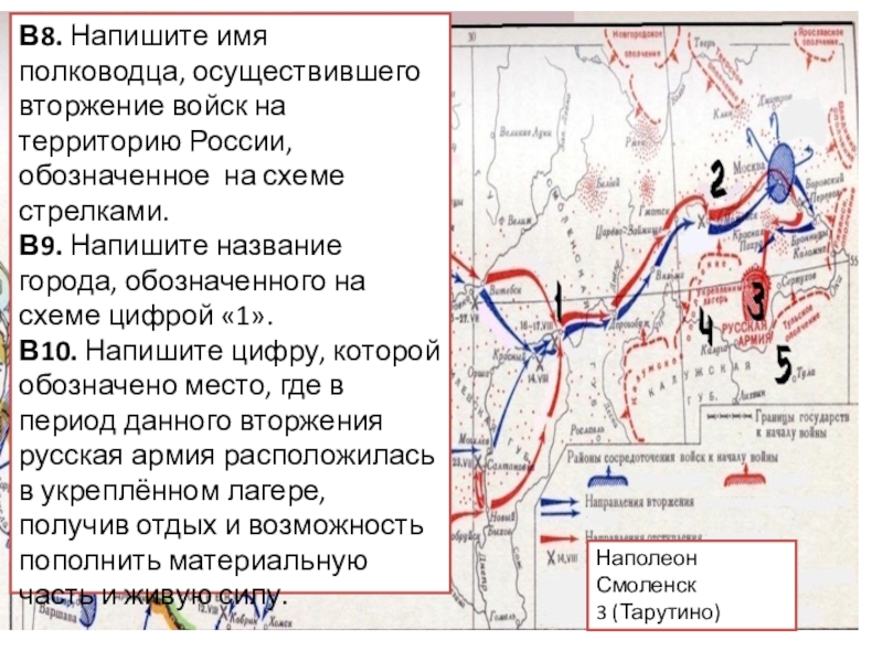 Запишите цифру, которой на карте обозначены войска русской армии и их союзников