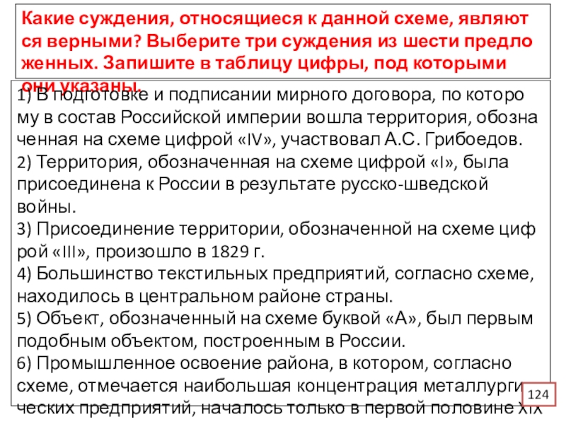 1) В подготовке и подписании мирного договора, по которому в состав Российской империи вошла территория, обозначенная на схеме цифрой «IV», участвовал А.С. Грибоедов.