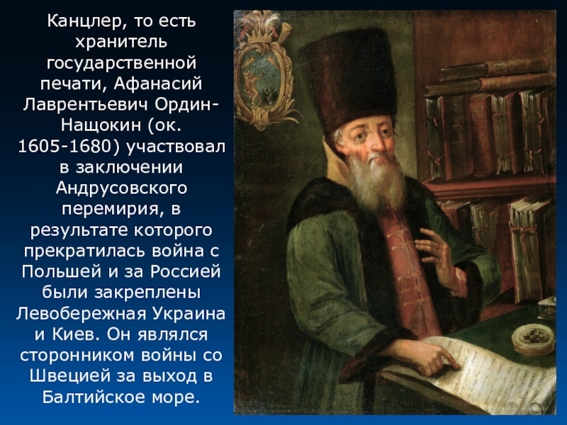 Слайд 52Канцлер, то есть хранитель государственной печати, Афанасий Лаврентьевич Ордин-Нащокин (ок. 1605-1680)
