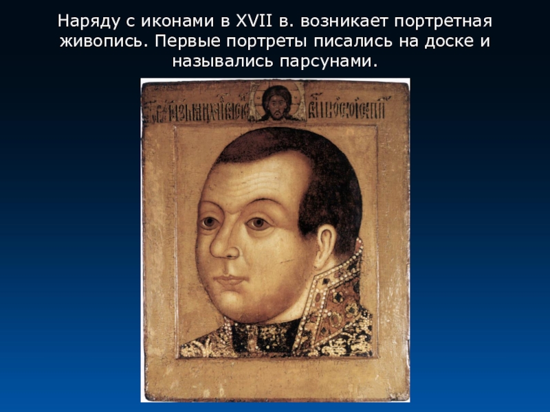 Слайд 49Наряду с иконами в XVII в. возникает портретная живопись. Первые портреты