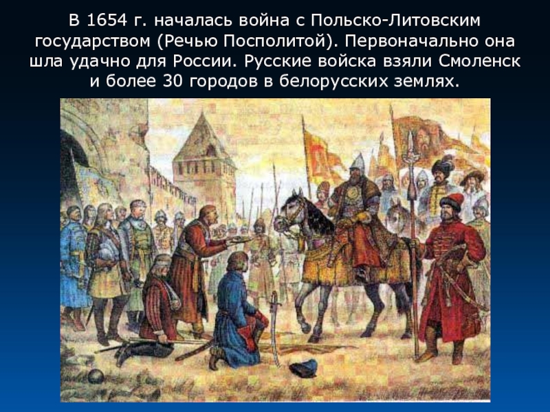 Слайд 27В 1654 г. началась война с Польско-Литовским государством (Речью Посполитой). Первоначально