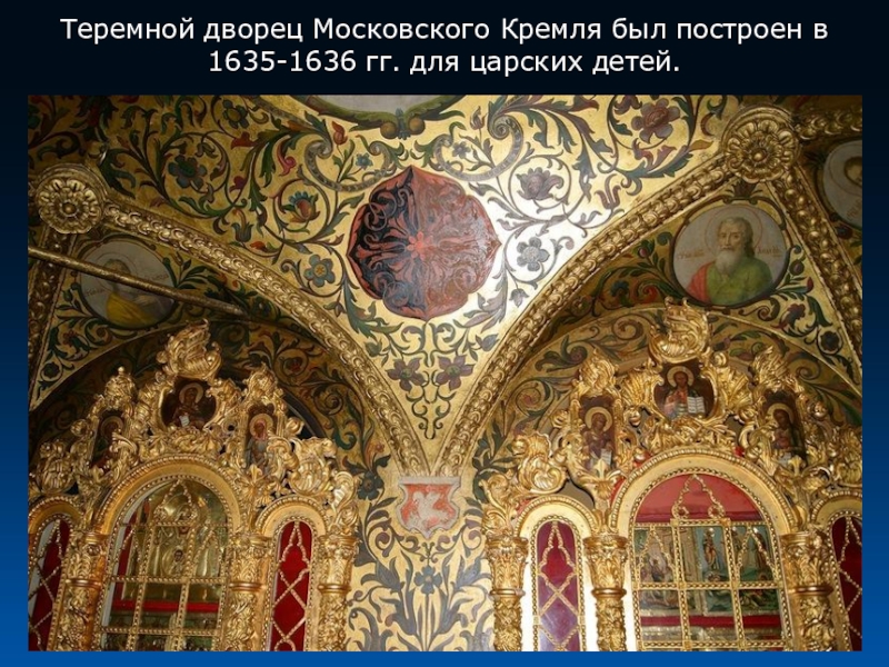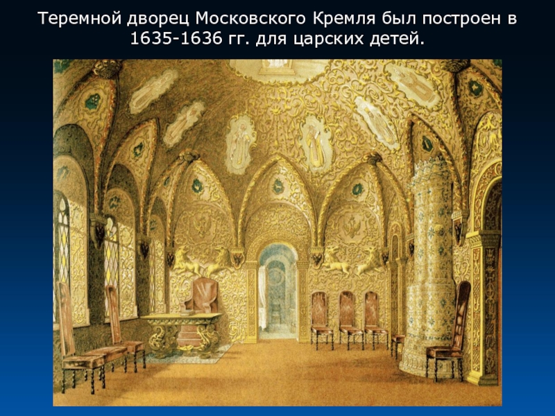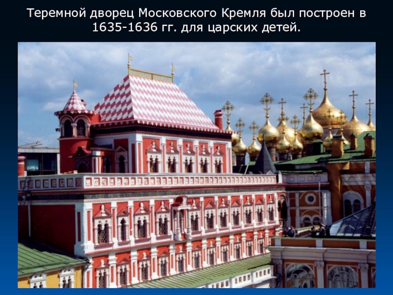 Слайд 44Теремной дворец Московского Кремля был построен в 1635-1636 гг. для царских