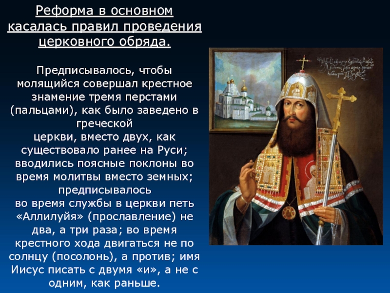 Слайд 18Реформа в основном касалась правил проведения церковного обряда.