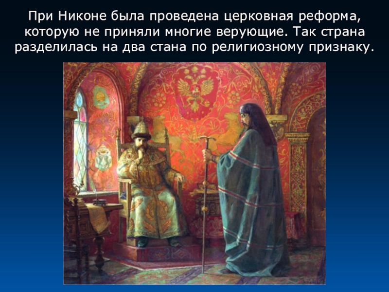 Слайд 17При Никоне была проведена церковная реформа, которую не приняли многие верующие.