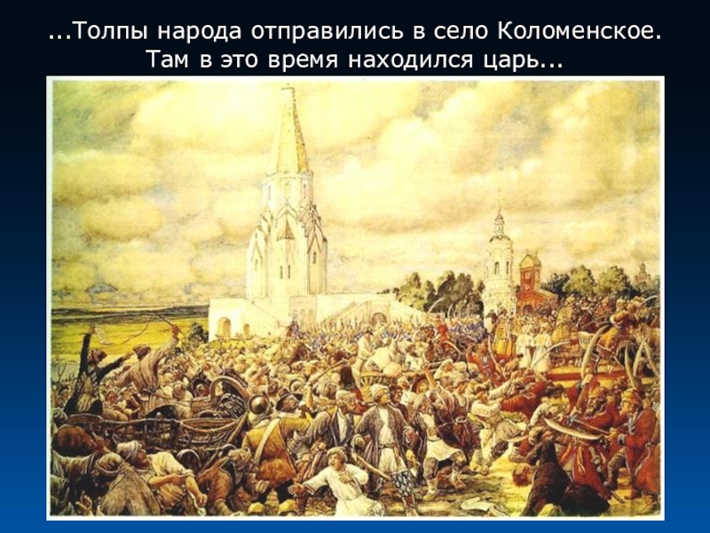 Слайд 8...Толпы народа отправились в село Коломенское.