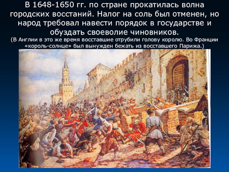 Слайд 5В 1648-1650 гг. по стране прокатилась волна городских восстаний. Налог на