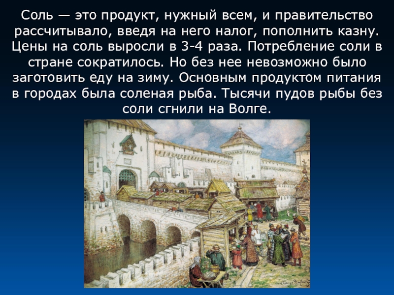 Слайд 3Соль — это продукт, нужный всем, и правительство рассчитывало, введя на