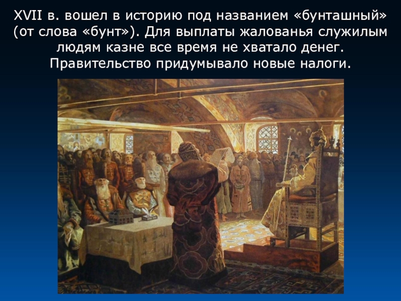 Слайд 2XVII в. вошел в историю под названием «бунташный» (от слова «бунт»).