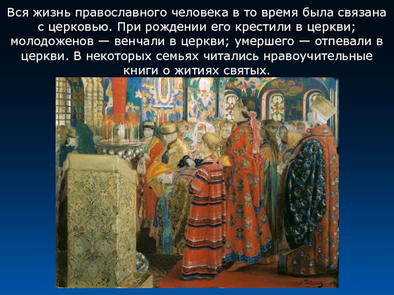 Слайд 33Вся жизнь православного человека в то время была связана с церковью.