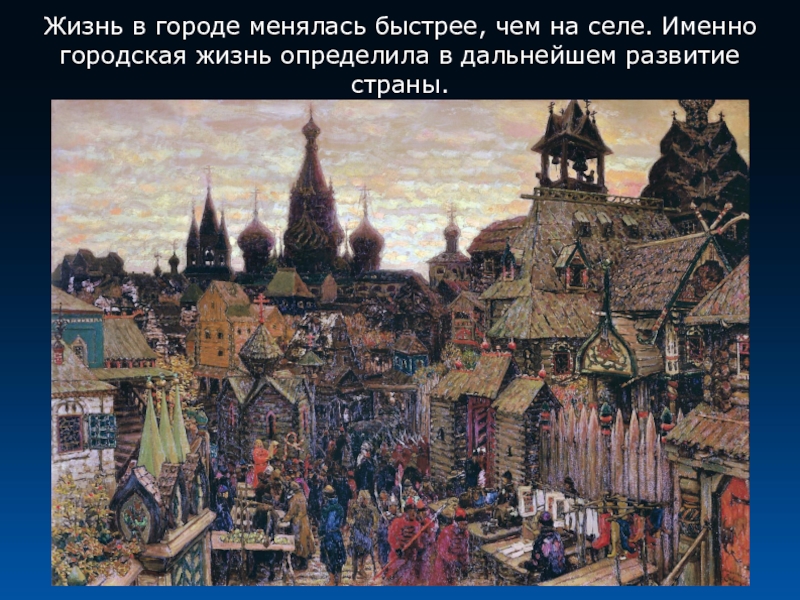 Слайд 37Жизнь в городе менялась быстрее, чем на селе. Именно городская жизнь