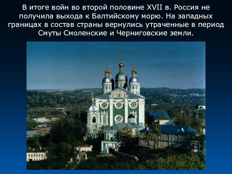 Слайд 31В итоге войн во второй половине XVII в. Россия не получила