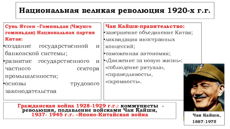 Гражданская война 1928-1929 г.г.: коммунисты -революция, подавление войсками Чан Кайши,