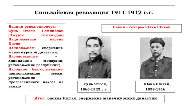 Синхайская революция1911-1912 г.г. (Сунь Ятсен, Юань Шикай),