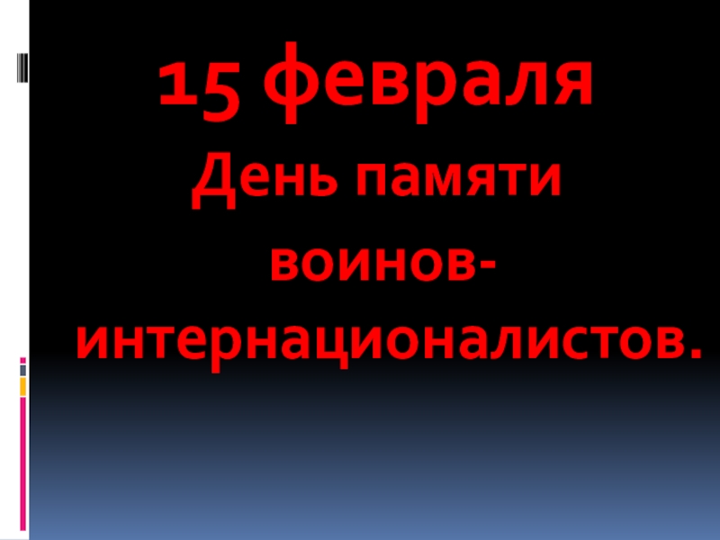 15 февраляДень памяти воинов-интернационалистов.