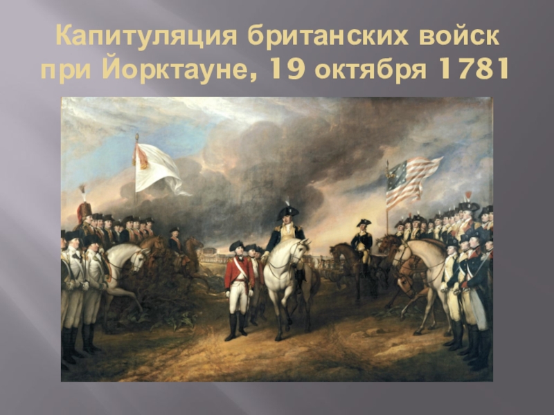 Слайд 9Капитуляция британских войск при Йорктауне, 19 октября 1781