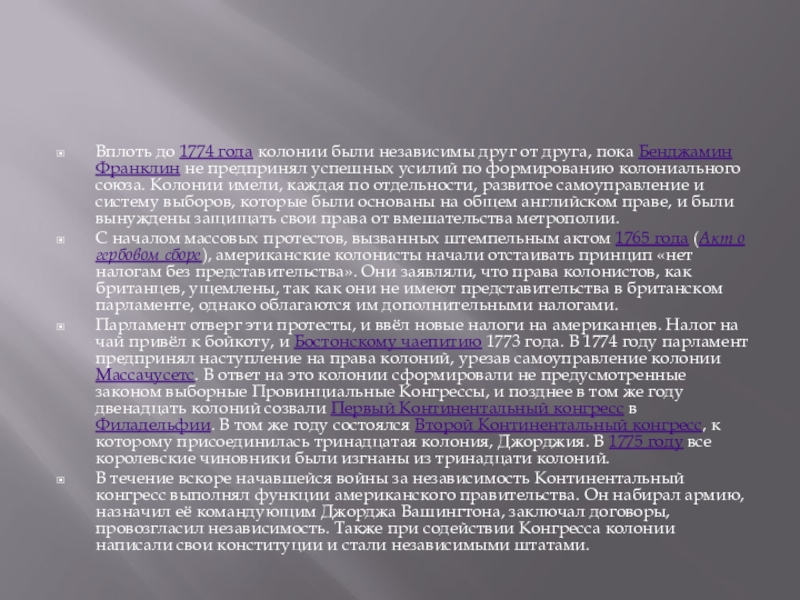 Слайд 20Вплоть до 1774 года колонии были независимы друг от друга, пока