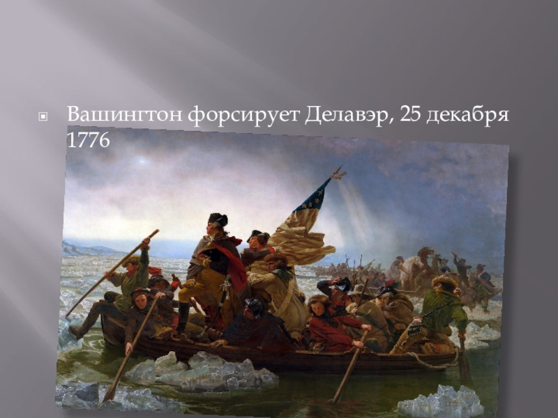 Слайд 5Вашингтон форсирует Делавэр, 25 декабря 1776