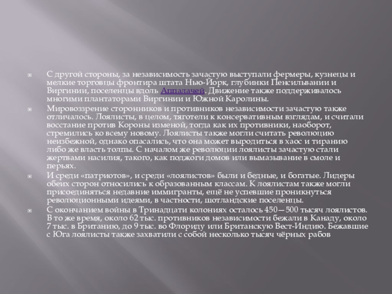 Слайд 17С другой стороны, за независимость зачастую выступали фермеры, кузнецы и мелкие