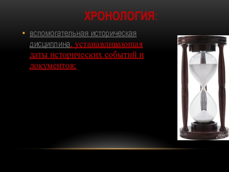 ХРОНОЛОГИЯ: вспомогательная историческая дисциплина, устанавливающая даты исторических событий и документов;