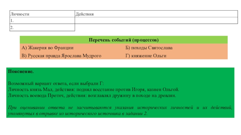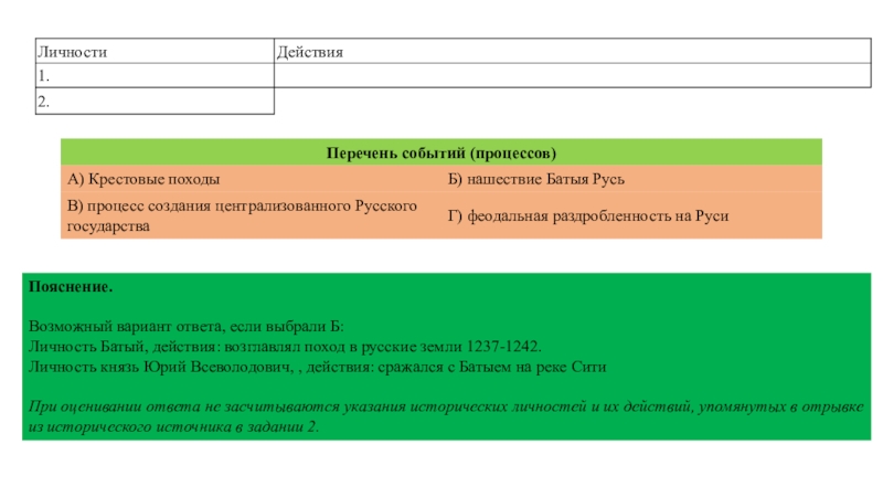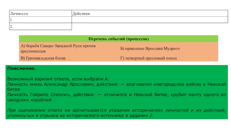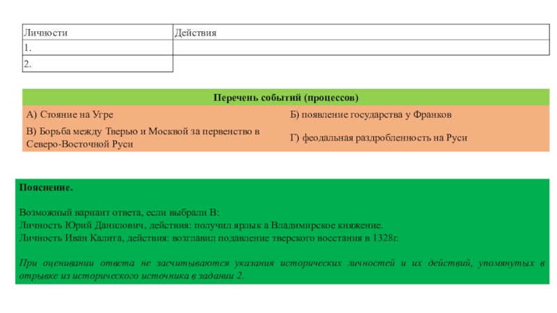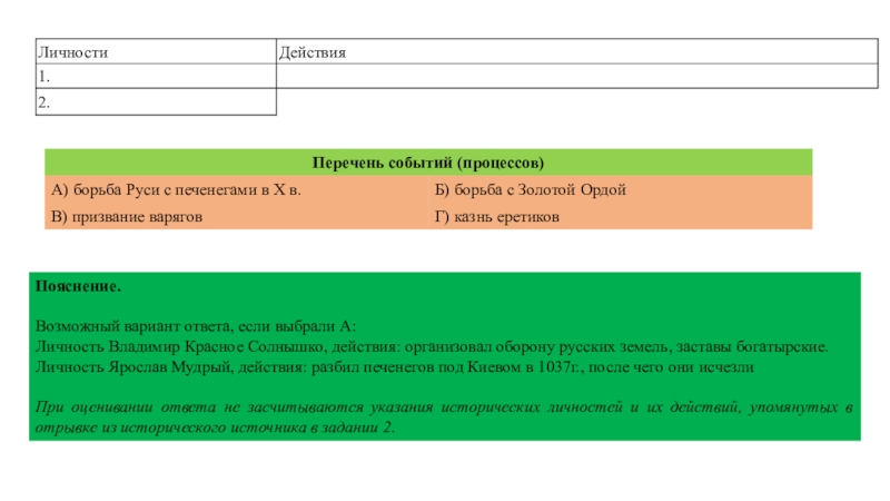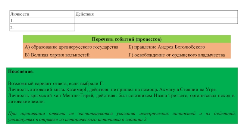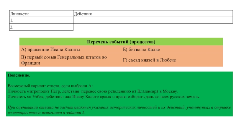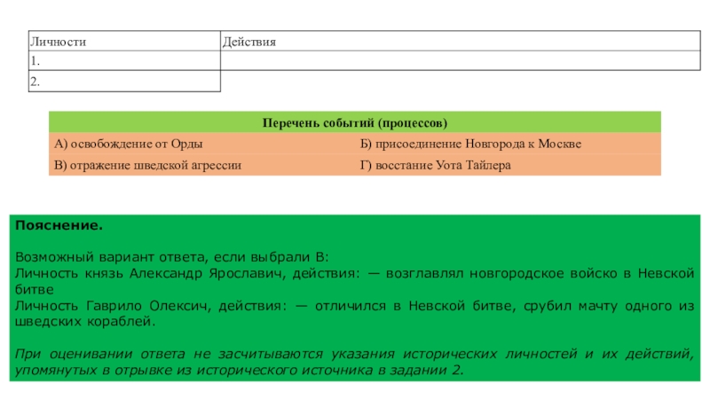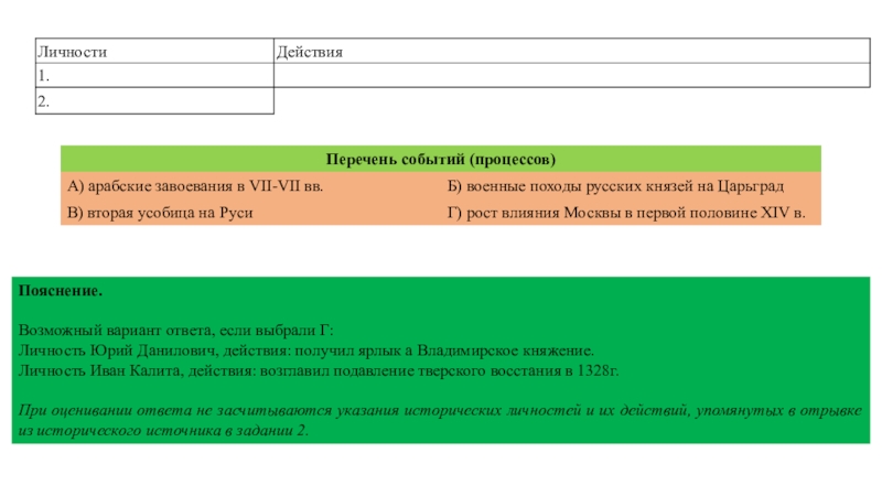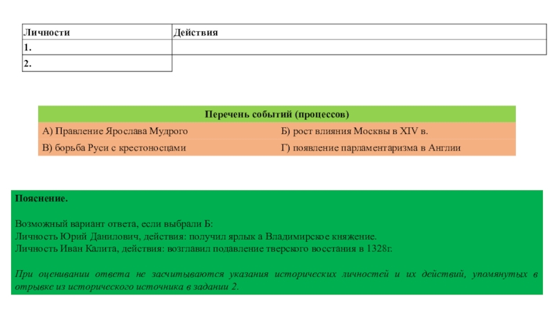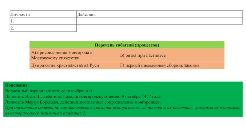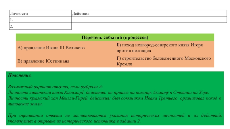 При оценивании ответа не засчитываются указания исторических личностей и их действий, упомянутых в отрывке из исторического источника в задании 2.