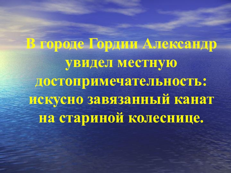 Слайд 7В городе Гордии Александр увидел местную достопримечательность: искусно завязанный канат на