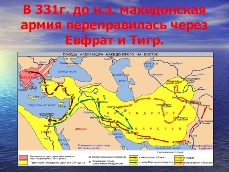 Слайд 15В 331г. до н.э. македонская армия переправилась через Евфрат и Тигр.