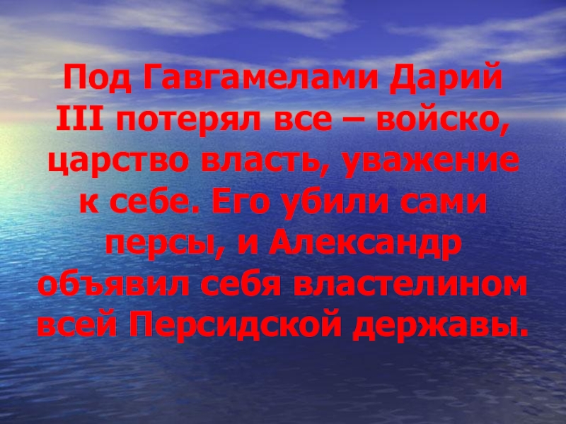 Слайд 18Под Гавгамелами Дарий III потерял все – войско, царство власть, уважение
