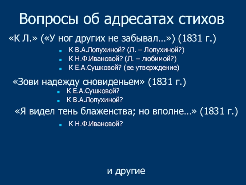 «Зови надежду сновиденьем» (1831 г.)