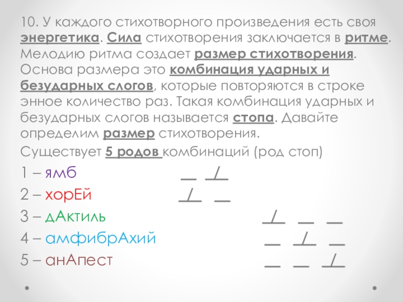 Слайд 2110. У каждого стихотворного произведения есть своя энергетика. Сила стихотворения заключается