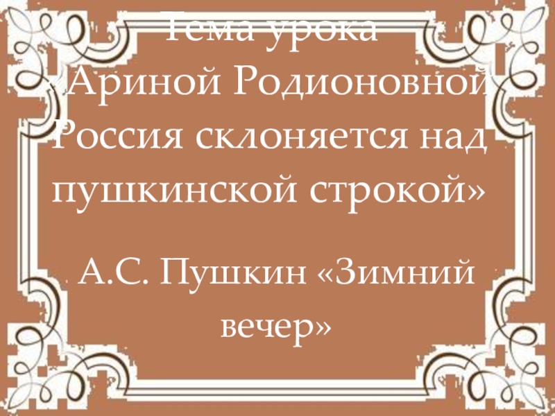 «Ариной Родионовной Россия склоняется над пушкинской строкой»