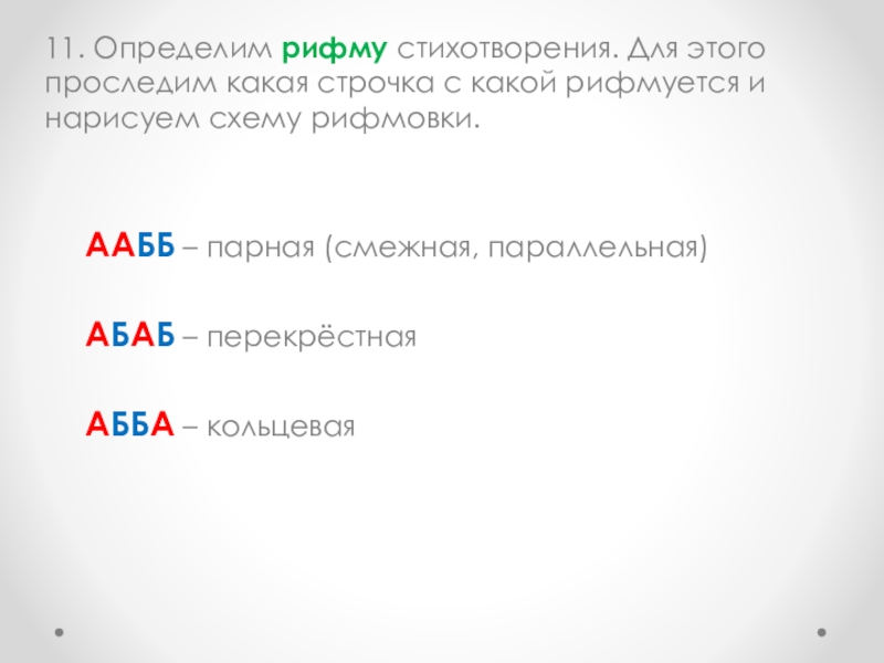 Слайд 2311. Определим рифму стихотворения. Для этого проследим какая строчка с какой