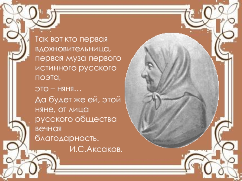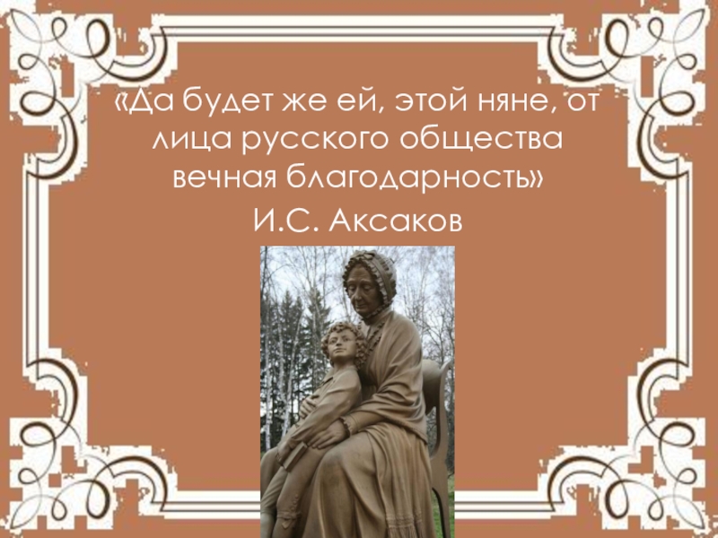 Слайд 32«Да будет же ей, этой няне, от лица русского общества вечная