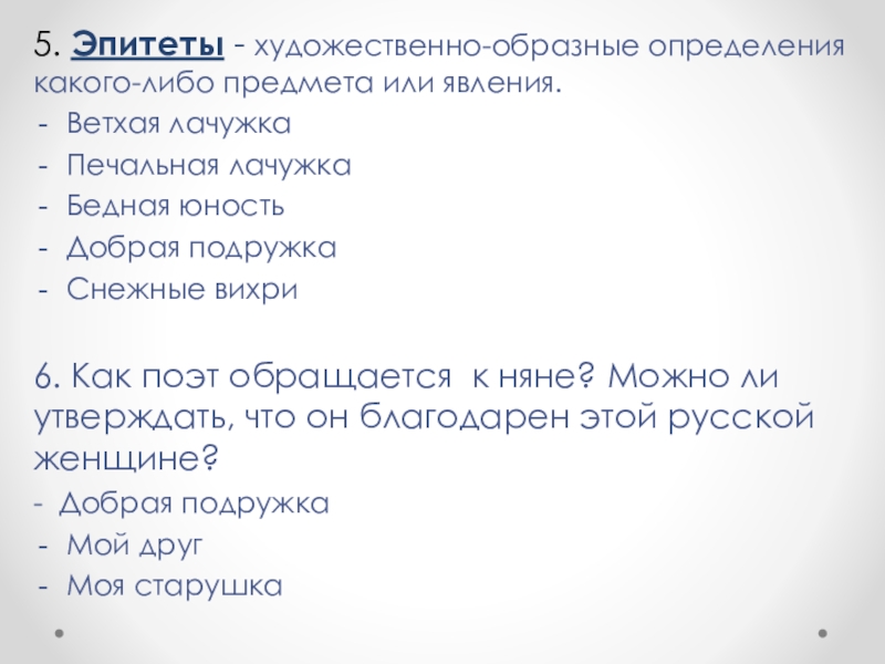 6. Как поэт обращается к няне? Можно ли утверждать, что он благодарен этой русской женщине?
