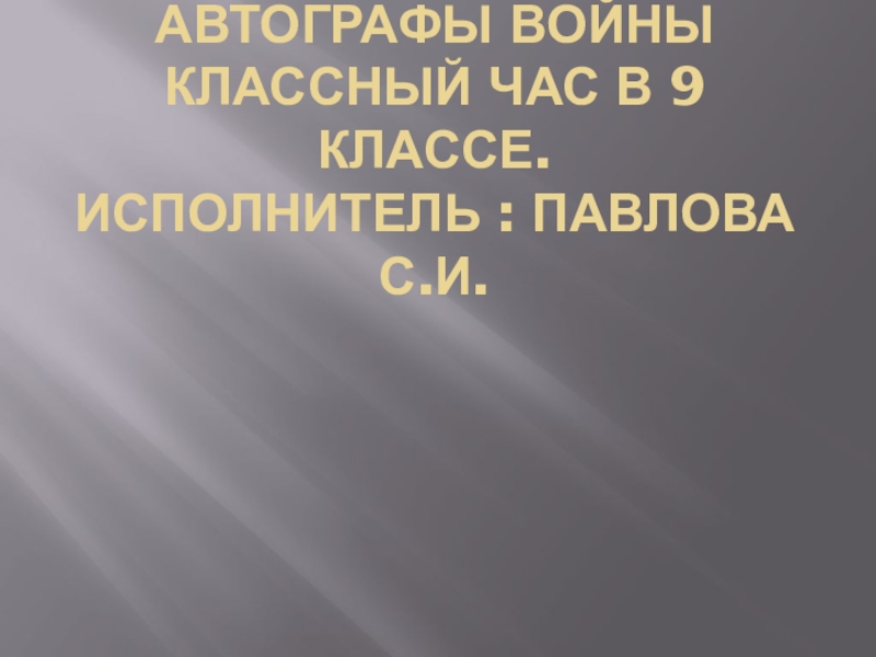 Слайд 1Автографы войны Классный час в 9 классе. Исполнитель : Павлова С.И.