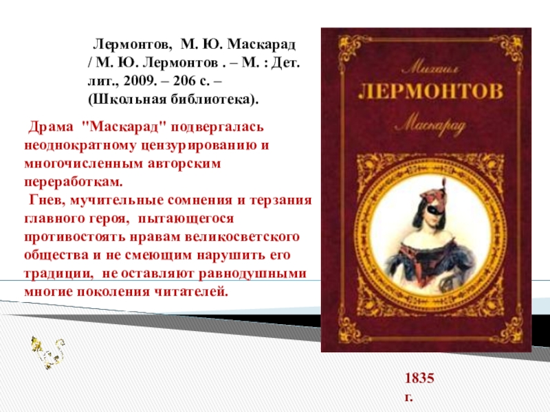 Лермонтов, М. Ю. Маскарад / М. Ю. Лермонтов . – М. : Дет. лит., 2009. – 206 с. – (Школьная библиотека).