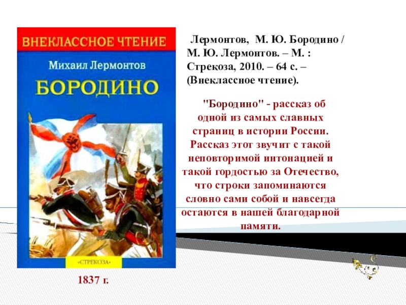 Лермонтов, М. Ю. Бородино / М. Ю. Лермонтов. – М. : Стрекоза, 2010. – 64 с. – (Внеклассное чтение).